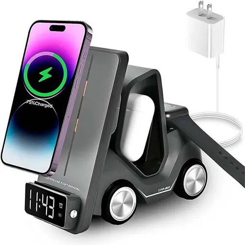 شارژر بی سیم 5 کاره مدل T20 طرح لیفتراک با طراحی خاص و منحصر به فرد خود به شکل لیفتراک، به راحتی میتواند به عنوان یک دکوراسیون جذاب در خانه یا محل کار شما عمل کند. این طراحی به گونهای است که نه تنها کارایی دستگاه را افزایش میدهد، بلکه جلوهای مدرن و شیک به محیط اطراف میبخشد. این ویژگی به ویژه برای افرادی که به دنبال جدیدترین و زیباترین لوازم جانبی برای فضای خود هستند، بسیار جذاب است. با این شارژر، میتوانید به راحتی از یک وسیله کاربردی و زیبا بهرهمند شوید.